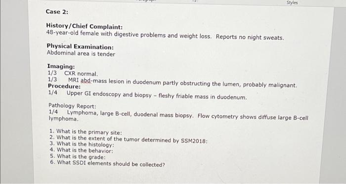 Solved Styles Case 2 History Chief Complaint 48 Year Old Chegg Com